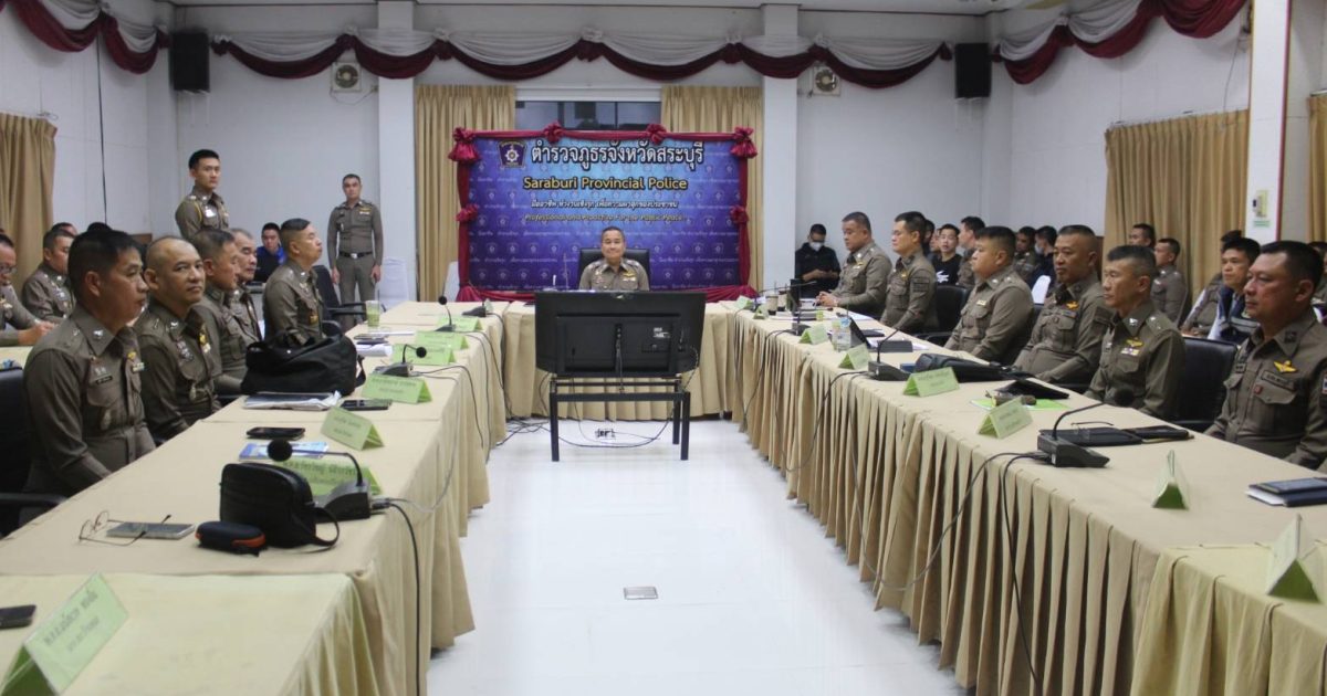พล.ต.ต.ธรรมนูญ เชาวะวนิชย์ ผบก.ภ.จว.สระบุรี/ประธาน พร้อมด้วย พ.ต.อ.เกษดา วัชรานนท์ รอง ผบก.ฯ,พ.ต.อ.ไพโรจน์ ตีรโสภณ รอง ผบก.ฯ,พ.ต.อ.ธีระ เถระพัฒน์ รอง ผบก.ฯ,พ.ต.อ.สมคิด สาวิสัย รอง ผบก.ฯ,พ.ต.อ.นรินทร์เนตร ศรีสุข ผกก.ฝอ.ภ.จว.สระบุรี,พ.ต.อ.ชัยรัตน์ ตันติวุฒิ ผกก.(สอบสวน) กลุ่มงานสอบสวนฯ พร้อมด้วย ผกก.สภ./หน.สภ.,ผกก.(สอบสวน) กลุ่มงานสอบสวนฯ,หน.งานสอบสวน,รอง ผกก.สส.,รอง ผกก.ป.,รอง ผกก.จร.,สารวัตรฝ่ายอำนวยการฯ และเจ้าหน้าที่ผู้เกี่ยวข้องร่วมประชุมบริหารตำรวจภูธรจังหวัดสระบุรี ครั้งที่ ๙/๒๕๖๘ ประจำเดือน พ.ค.๒๕๖๘ ณ ห้องประชุม ชั้น ๓ ภ.จว.สระบุรี และมีผู้แทนจาก พิสูจน์หลักฐานจังหวัดสระบุรี,สันติบาล,ตรวจคนเข้าเมืองจังหวัดสระบุรี และตำรวจทางหลวง ร่วมประชุม