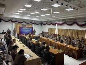 พล.ต.ต.ธรรมนูญ เชาวะวนิชย์ ผบก.ภ.จว.สระบุรี/ประธาน พร้อมด้วย พ.ต.อ.เกษดา วัชรานนท์ รอง ผบก.ฯ,พ.ต.อ.ไพโรจน์ ตีรโสภณ รอง ผบก.ฯ,พ.ต.อ.ธีระ เถระพัฒน์ รอง ผบก.ฯ,พ.ต.อ.เรืองยศ โสภาพล รอง ผบก.ฯ,พ.ต.อ.สมคิด สาวิสัย รองลง ผบก.ฯ,พ.ต.อ.นรินทร์เนตร ศรีสุข ผกก.ฝอ.ภ.จว.สระบุรี,พ.ต.อ.ชัยรัตน์ ตันติวุฒิ ผกก.(สอบสวน) กลุ่มงานสอบสวนฯ พร้อมด้วย ผกก.สภ./หน.สภ.,ผกก.(สอบสวน) กลุ่มงานสอบสวนฯ,ผกก.กก.สส.ภ.จว.สระบุรี,หน.งานสอบสวน,รอง ผกก.สส.,รอง ผกก.ป.,รอง ผกก.จร.,รอง ผกก.ฝอ.ฯ,สารวัตรฝ่ายอำนวยการฯ และเจ้าหน้าที่ผู้เกี่ยวข้องร่วมประชุมบริหาร ภ.จว.สระบุรี ครั้งที่ ๓/๒๕๖๙ ประจำเดือน ธันวาคม พ.ศ.๒๕๖๘ ณ ห้องประชุม ชั้น ๓ ภ.จว.สระบุรี และมีผู้แทนจาก พิสูจน์หลักฐาน,สันติบาล,ตรวจคนเข้าเมืองจังหวัดสระบุรี,ตำรวจท่องเที่ยว และตำรวจทางหลวง ร่วมประชุม