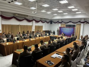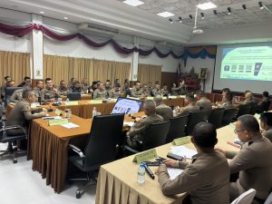 พล.ต.ต.ธรรมนูญ เชาวะวนิชย์ ผบก.ภ.จว.สระบุรี/ประธาน พร้อมด้วย พ.ต.อ.เกษดา วัชรานนท์ รอง ผบก.ฯ,พ.ต.อ.ไพโรจน์ ตีรโสภณ รอง ผบก.ฯ,พ.ต.อ.ธีระ เถระพัฒน์ รอง ผบก.ฯ,พ.ต.อ.เรืองยศ โสภาพล รอง ผบก.ฯ,พ.ต.อ.สมคิด สาวิสัย รองลง ผบก.ฯ,พ.ต.อ.นรินทร์เนตร ศรีสุข ผกก.ฝอ.ภ.จว.สระบุรี,พ.ต.อ.ชัยรัตน์ ตันติวุฒิ ผกก.(สอบสวน) กลุ่มงานสอบสวนฯ พร้อมด้วย ผกก.สภ./หน.สภ.,ผกก.(สอบสวน) กลุ่มงานสอบสวนฯ,ผกก.กก.สส.ภ.จว.สระบุรี,หน.งานสอบสวน,รอง ผกก.สส.,รอง ผกก.ป.,รอง ผกก.จร.,รอง ผกก.ฝอ.ฯ,สารวัตรฝ่ายอำนวยการฯ และเจ้าหน้าที่ผู้เกี่ยวข้องร่วมประชุมบริหาร ภ.จว.สระบุรี ครั้งที่ ๓/๒๕๖๙ ประจำเดือน ธันวาคม พ.ศ.๒๕๖๘ ณ ห้องประชุม ชั้น ๓ ภ.จว.สระบุรี และมีผู้แทนจาก พิสูจน์หลักฐาน,สันติบาล,ตรวจคนเข้าเมืองจังหวัดสระบุรี,ตำรวจท่องเที่ยว และตำรวจทางหลวง ร่วมประชุม