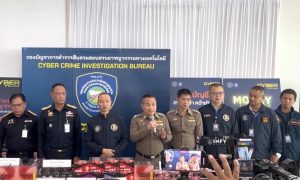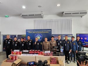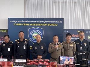 ร่วมกับ เจ้าหน้าที่สรรพสามิตพร้อมเจ้าหน้าที่ที่เกี่ยวข้องร่วมแถลงข่าว ตำรวจไซเบอร์ ร่วมสรรพสามิต ฝ่ายปกครอง และ สภ.วิหารแดง ยึดบุหรี่ไฟฟ้าครั้งมโหฬารกว่า 6 แสนชิ้น รวมมูลค่ากว่า 90 ล้านบาท สืบเนื่องจาก พ.ต.ท.วรศักดิ์ รอดสัมฤทธิ์ รอง ผกก.1 บก.สอท.2 ได้นำกำลังเจ้าหน้าที่ตำรวจ กก.1 บก.สอท.2 ร่วมกับ นายธีรัชพงศ์ อินทระ และ นายณัฐคง สารชาติ นักวิชาการสรรพสามิตชำนาญการ พร้อมกำลังเจ้าหน้าที่สรรพสามิตร ร่วมกันสืบสวนขยายผลการลักลอบจำหน่ายบุหรี่ไฟฟ้าในพื้นที่ กทม. จนพบเบาะแสความเชื่อมโยงไปยังการลักลอบจำหน่ายบุหรี่ไฟฟ้าให้แก่เยาวชนในพื้นที่ จ.สระบุรี และพื้นที่ใกล้เคียง จากการร่วมกันลงพื้นที่สืบสวน ทำให้ทราบว่า คนร้ายได้ใช้ยานพาหนะเป็นรถกะบะตู้ทึบ Isuzu สีขาวตอนเดียว ในการขนส่งสินค้าประเภทบุหรี่ไฟฟ้า จึงได้มีเฝ้าสะกดรอยติดตามเรื่อยมา กระทั่งทราบว่ารถยนต์คันดังกล่าว ได้ขนบุหรี่ไฟฟ้าไปเก็บรอพักเพื่อส่งให้ลูกค้า ณ โกดังแห่งหนึ่ง ในพื้นที่ หมู่ที่ 4 ต.บ้านลำ อ.วิหารแดง จ.สระบุรี ต่อมาเจ้าหน้าที่ตำรวจไซเบอร์และสรรพสามิตพบบุหรี่ไฟฟ้าซึ่งแกะออกจากกล่องแล้ววางอยู่บริเวณโกดังดังกล่าว และพบลังสินค้าจำนวนมากภายในโกดัง จึงได้ประสานฝ่ายปกครอง ปลัดอำเภอ ผู้นำชุมชน กำนัน ผู้ใหญ่บ้าน และเจ้าหน้าที่ตำรวจ สภ.วิหารแดง เข้าร่วมเข้าตรวจค้นโกดังดังกล่าว
