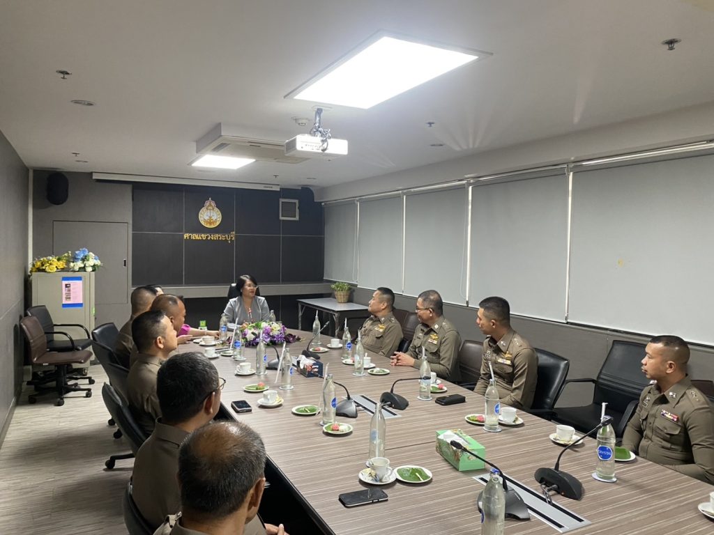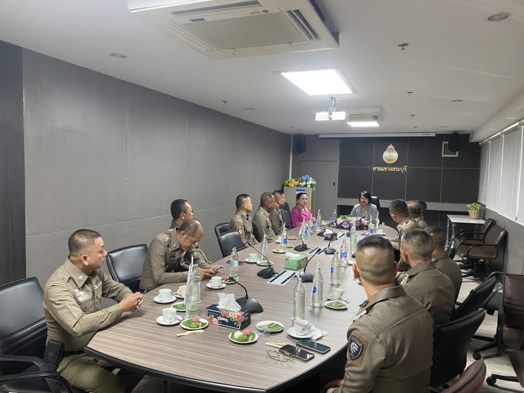 <✵✵》พล.ต.ต.ธรรมนูญ เชาวะวนิชย์ ผบก.ภ.จว.สระบุรี《✵✵>พร้อมด้วยข้าราชการตำรวจในสังกัด ภ.จว.สระบุรี ดังนี้ พ.ต.อ.สมคิด สาวิสัย รอง ผบก.ภ.จว.สระบุรี,พ.ต.อ.สุริยะ สุดกังวาล ผกก.สภ.เมืองสระบุรี,พ.ต.อ.วีรวุฒิ ดำสุวรรณ ผกก.สภ.พระพุทธบาท,พ.ต.อ.สุวัฒน์ ฉัตรเจริญพร ผกก.สภ.เสาไห้,พ.ต.อ.มนัสเวท ทองอิ่ม ผกก.สภ.บ้านหมอ,พ.ต.อ.วัชรวิชญ์ นิธิวรรัชย์ ผกก.สภ.เฉลิมพระเกียรติ,พ.ต.อ.ศิริมงคล สุขะปารมี ผกก.สภ.หนองโดน,พ.ต.อ.ครรชิต จันทเลิศ ผกก.(สอบสวน) ภ.จว.สระบุรี,หน.งานสอบสวน ในสังกัด ภ.จว.สระบุรี ได้เดินทางไปพบ นางอังคณา สินเกษมผู้พิพากษาหัวหน้าศาลแขวงสระบุรี เพื่อแสดงความยินดีในโอกาสที่ท่านเข้ารับการดำรงตำแหน่งใหม่ ตลอดจน แลกเปลี่ยนแนวทางการปฏิบัติงานพร้อมทั้งพูดคุยปรึกษาปัญหา อุปสรรค ทั้งข้อแนะนำ และข้อขัดข้องเพื่อให้การทำงานระหว่างหน่วยงานในกระบวนการยุติธรรมเป็นไปด้วยความเรียบร้อย