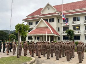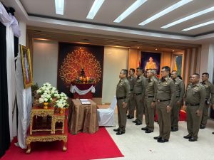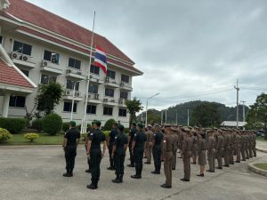 วันนี้ (18 พ.ย. 2568) เวลา 08.00 น. พล.ต.ต.ธรรมนูญ เชาวะวนิชย์ ผบก.ภ.จว.สระบุรี นำข้าราชการตำรวจในสังกัด ภ.จว.สระบุรีเข้าแถวเคารพธงชาติ สวดมนต์ และร่วมถวายความอาลัย โดยการยืนสงบนิ่ง เพื่อน้อมรำลึกถึงพระมหากรุณาธิคุณ ของสมเด็จพระนางเจ้าสิริกิติ์ พระบรมราชินีนาถ พระบรมราชชนนีพันปีหลวง เสด็จสู่สวรรคาลัย และเพื่อเป็นการแสดงความจงรักภักดีต่อสถาบัน ชาติ ศาสนา พระมหากษัตริย์ และแสดงเจตนารมณ์ เราไม่ใช่องค์กรอาชญากรรม ตลอดจน เสริมสร้างความประพฤติ และระเบียบวินัยข้าราชการตำรวจ มีความพร้อมในการปฏิบัติหน้าที่ และสร้างภาพลักษณ์ที่ดีต่อหน่วยงาน ณ บริเวณหน้าเสาธง ภ.จว.สระบุรี อ.แก่งคอย จว.สระบุรี